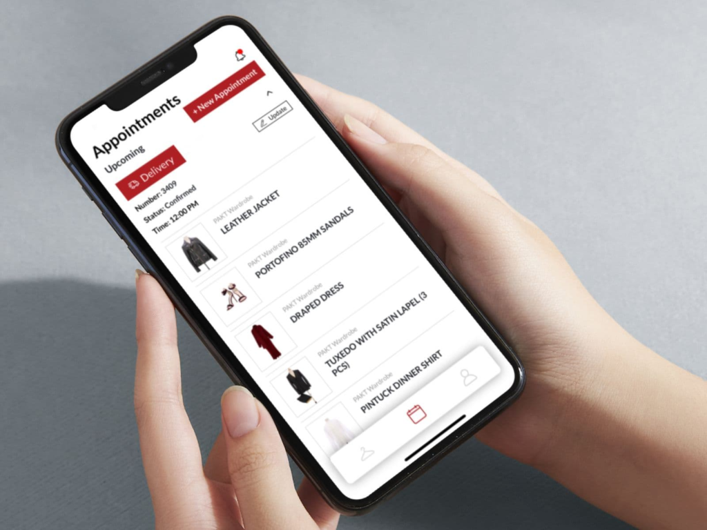 Through the app, professionals can view digitized versions of garments, make selections, and even coordinate fittings via photo or video calls. PAKT ensures that all garments selected for fittings are packed and delivered directly to customers, offering a hassle-free, streamlined process.